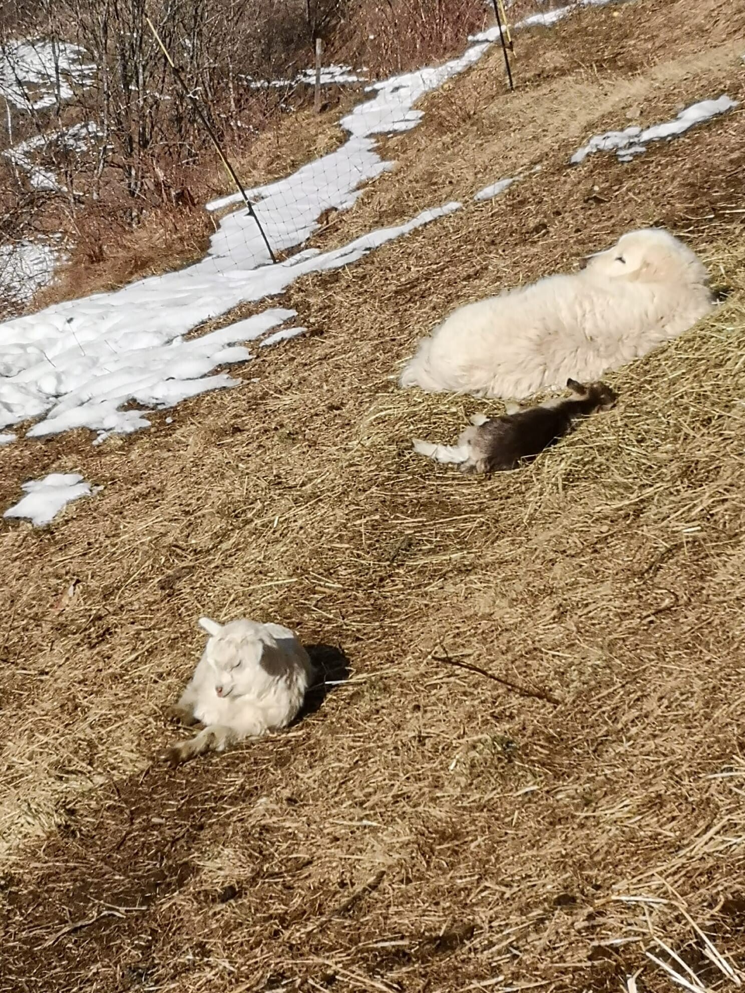 I cani da protezione dormono vicini ai cuccioli delle capre